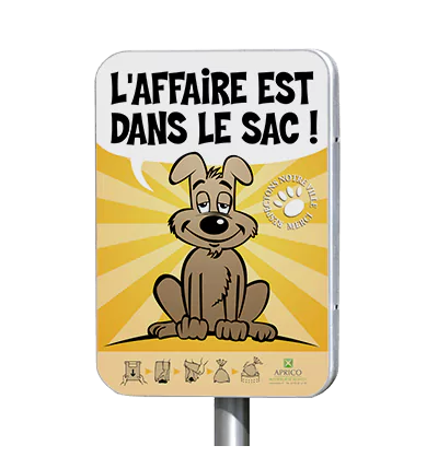 La rencontre avec la société Auweko ® donna à Aprico l’opportunité d’élargir sa gamme de produits avec des corbeilles conçues aussi pour communiquer grâce à leurs espaces dédiés qui manquaient jusqu’alors aux mobiliers canins.